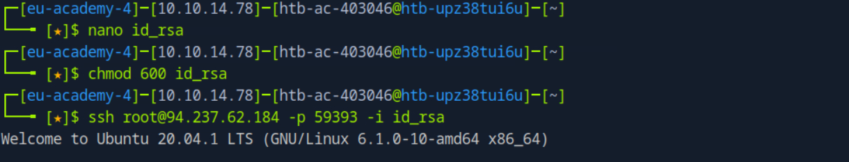 Now we can login by using the ssh private key id_rsa and be sure that file is in the proper permission to change the permission use the command chmod 600 <file_name?>